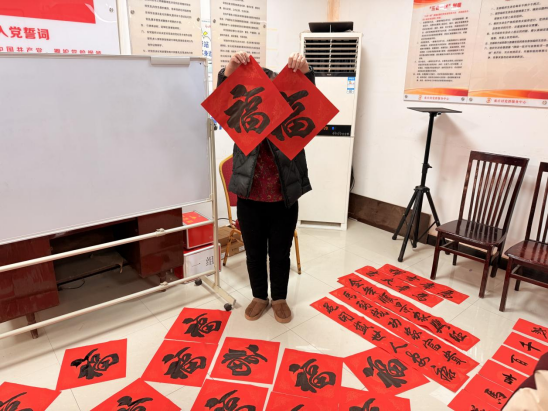 闻讯而来的村民们络绎不绝,围聚在书案前,或细品联句、挑选心意之作,或静候墨干、眼中满是期待,每个人脸上都洋溢着欣喜的笑容。工作人员有序引导、协助分发,将一副副带着清新墨香、饱含情谊的春联与福字递到村民手中,也将融融暖意与诚挚祝福传递到每个人心间。现场欢声笑语不绝,文化韵味与节日喜气交织弥漫,处处洋溢着温馨祥和的氛围。