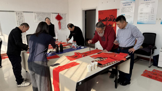 活动现场墨香四溢,暖意融融。分馆特邀书法爱好者及部分热心读者中的“书法能手”挥毫泼墨。一张张红纸铺陈开来,书法老师们凝神聚气,笔走龙蛇,或楷或行,或隶或草。不消多时,一副副饱含美好祝愿的春联,以及形态各异、气韵生动的“福”字便跃然纸上,既有传统韵味,又充满时代气息,传递着对新一年的殷切期盼与美好祝福。